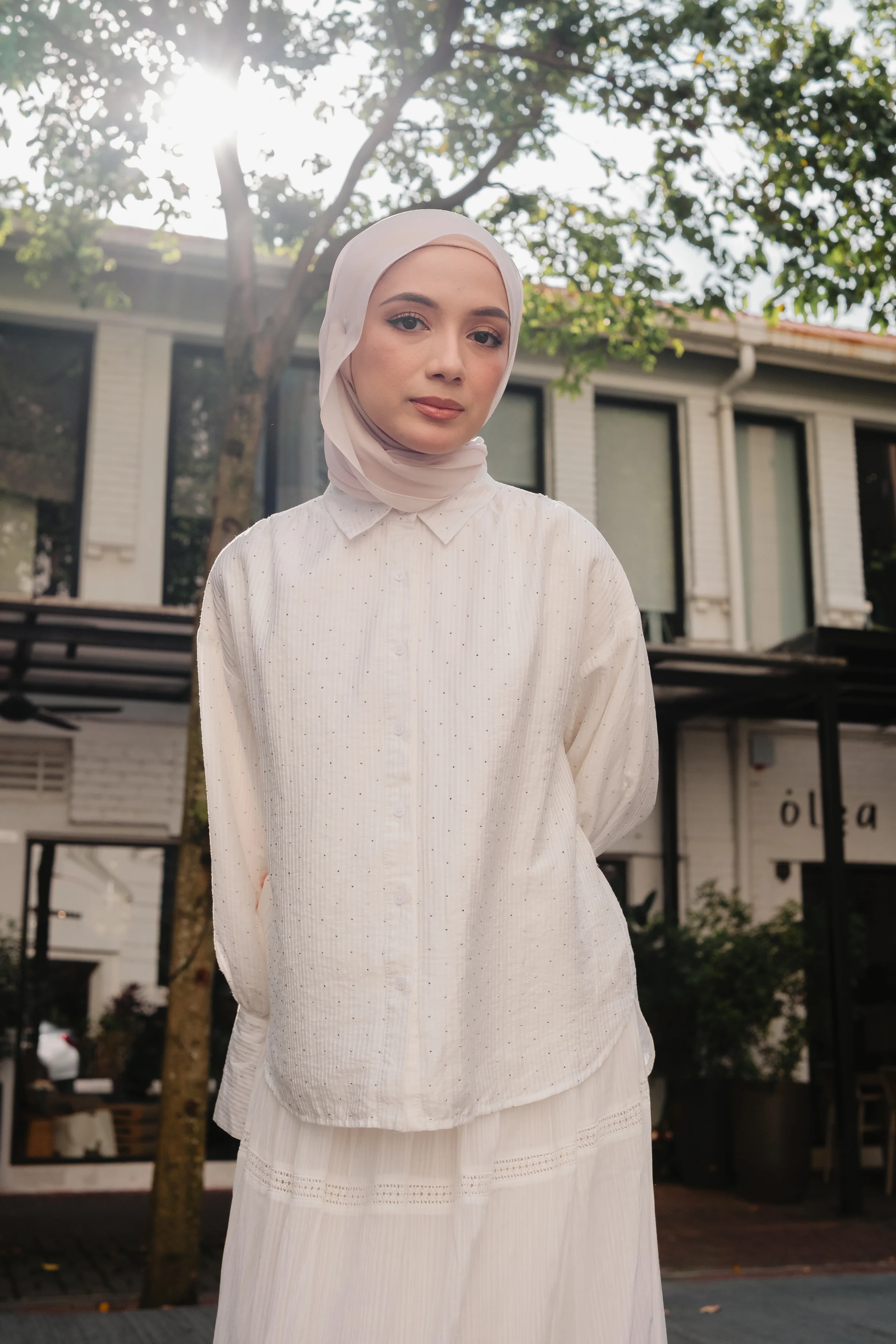 Effortlessly capturing the essence of refined elegance, The Joan Subdued StrIpes Shirt in Snowis a celebration of understated beauty. Crafted from a delicate blend of soft, breathable cotton, this blouse is designed to drape gracefully over the body, offering both comfort and style. The subtle pinstripe pattern, adorned with shimmering studded rhinestones, adds a touch of vintage-inspired charm, reminiscent of a sunlit afternoon in a blooming garden.